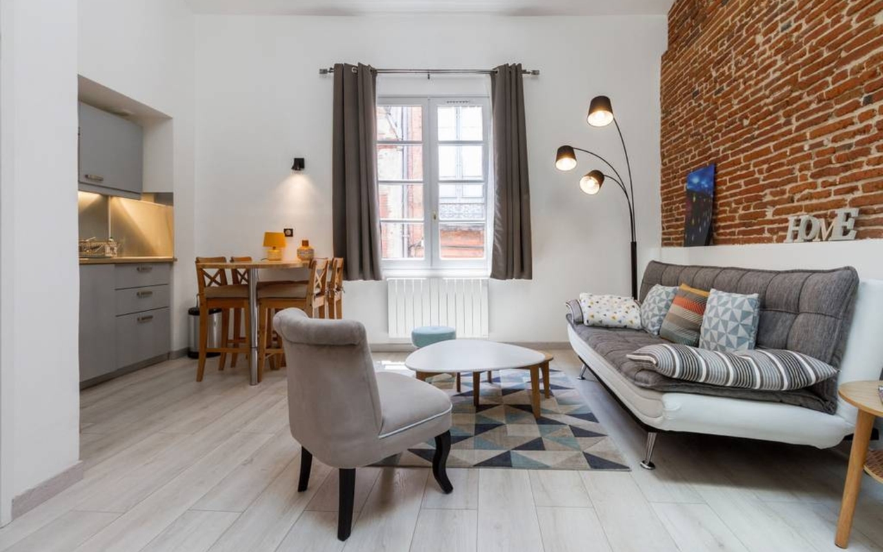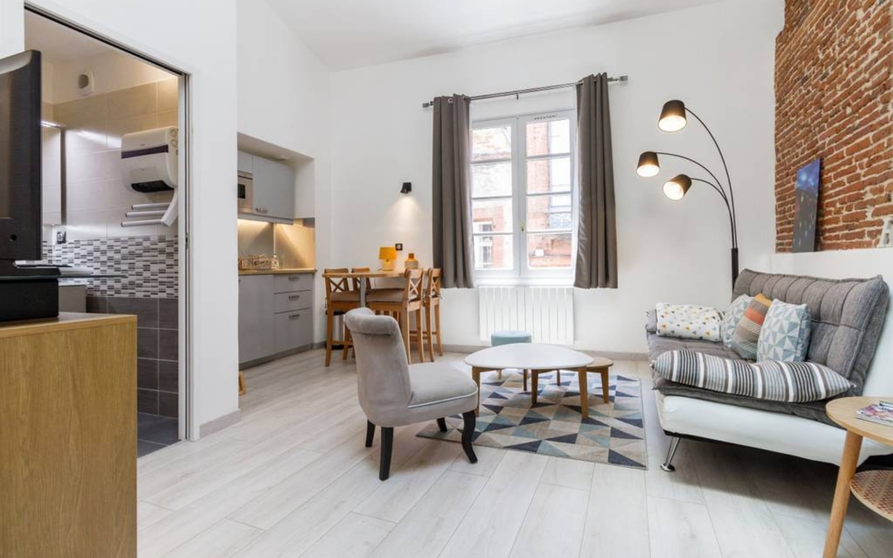 Il s’agit d’un beau logement de 35 m2 dans une demeure ancienne à 10 mètres de la place des Carmes. L’appart hôtel a été rénové avec goût et dispose d’une grande hauteur sous plafond (chambre en mezzanine). Son superbe mur de briques typiquement toulousaines saura immanquablement vous charmer !